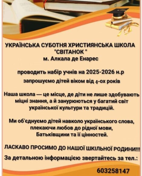 Українська суботня християнська школа «Світанок» в Aлькала де Енарес